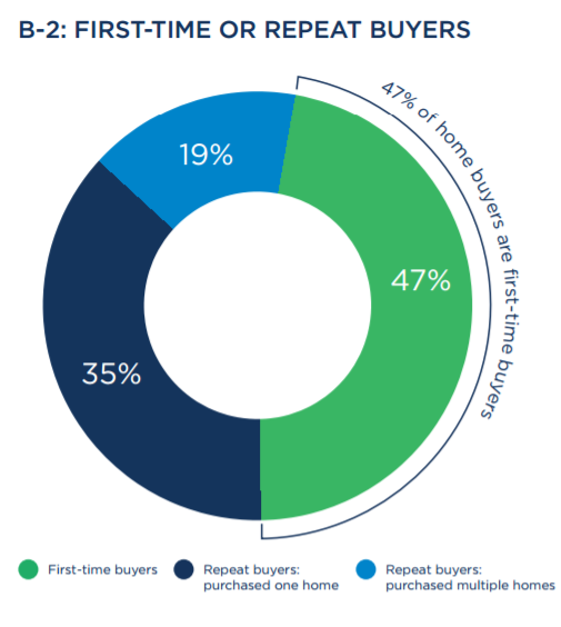 - Half (50 percent) of today’s home buyers are under the age of 36, and 47 percent are first-time buyers. Solo home buyers are in the minority; most buyers are shopping with a spouse or partner (73 percent).
