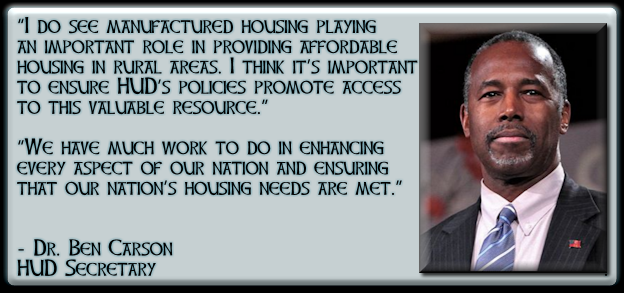 Dr. Carson – like his predecessor, Julian Castro – has indicated he sees value to manufactured homes as an important part of the affordable housing mix of America. So there are several reasons to be hopeful, as the video notes.