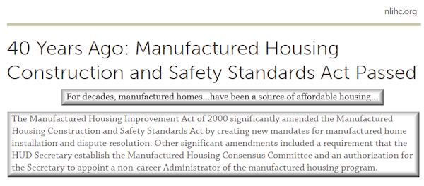 This is where he and others believe the federal government ought to step in and enforce the law. The Manufactured Housing Association for Regulatory Reform (MHARR) restated their long-held and similar view recently.