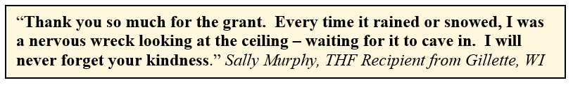 Tomorrow’s Home Foundation (THF) is a non-profit charitable organization created by the Wisconsin Housing Alliance in 1999…to help people like 83-year-old Sally Murphy.
