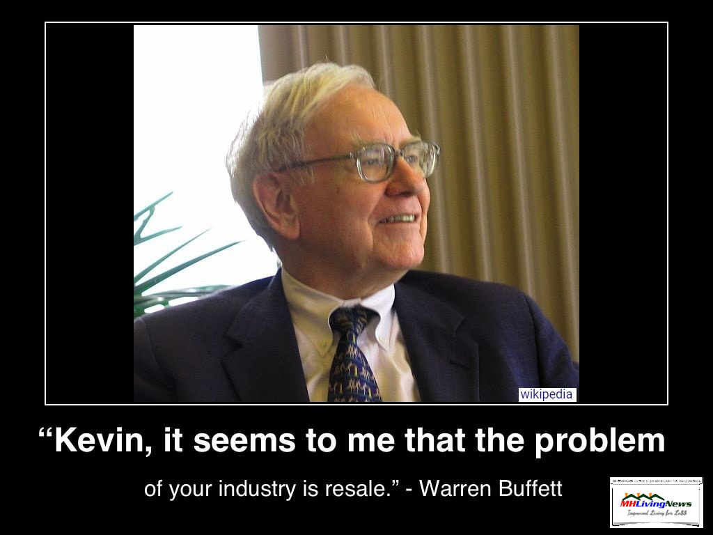 WarrenBuffettPhotoQuoteStatementToKevinClaytonKevinSeemsToMeThatTheProblemOfYourIndustryIsResaleBuffettQuoteManufacturedHomeLivingNews