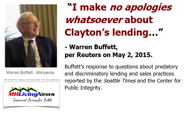 WarrenBuffettPhotoQuoteIMakeNoApologiesWhatsoeverAboutClaytonsLendingPerReutersManufacturedHomeLivingNews