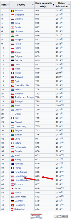 The truth has been hiding in plain sight for years. But politics, the revolving door, and other factors have kept Americans – living in one of the wealthiest nation per capita on planet Earth – out of the top 40 countries in the world in terms of the percentage rate for personal home ownership.