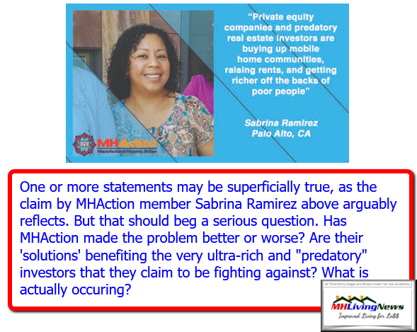 Let’s stress that as in the case of the reporting by MHAction – which lists Kevin Borden as their executive director – on how private equity giants are undermining manufactured home community living in numerous cases, there are valid evidence-based argument to be made. Their private report as part of the Private Equity Stakeholder Project was part of the information that the Washington Post, satirist John Oliver in HBO’s Last Week Tonight, and others used in their respective reports. See the report with videos shown below.