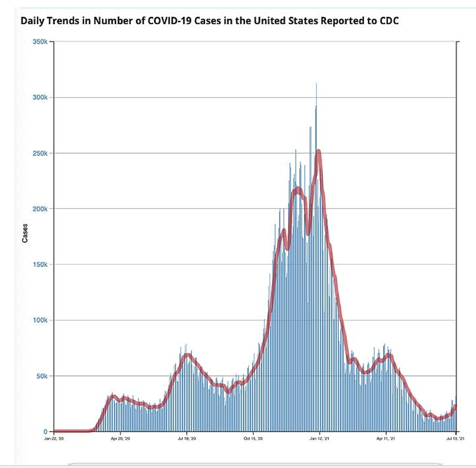 According to Centers for Disease Control and Prevention data,1 COVID-19 “cases” have trended downward since peaking during the first and second week of January 2021.