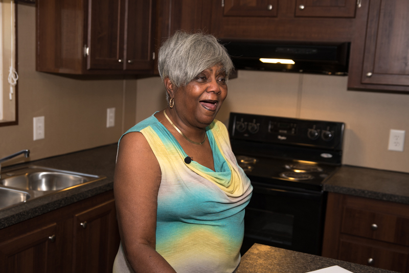 Clayton Homes of Pelham worked on removing Woods’ old home and setting up the new energy-efficient model home at no cost. On Oct. 7, Woods saw her new home for the first time.