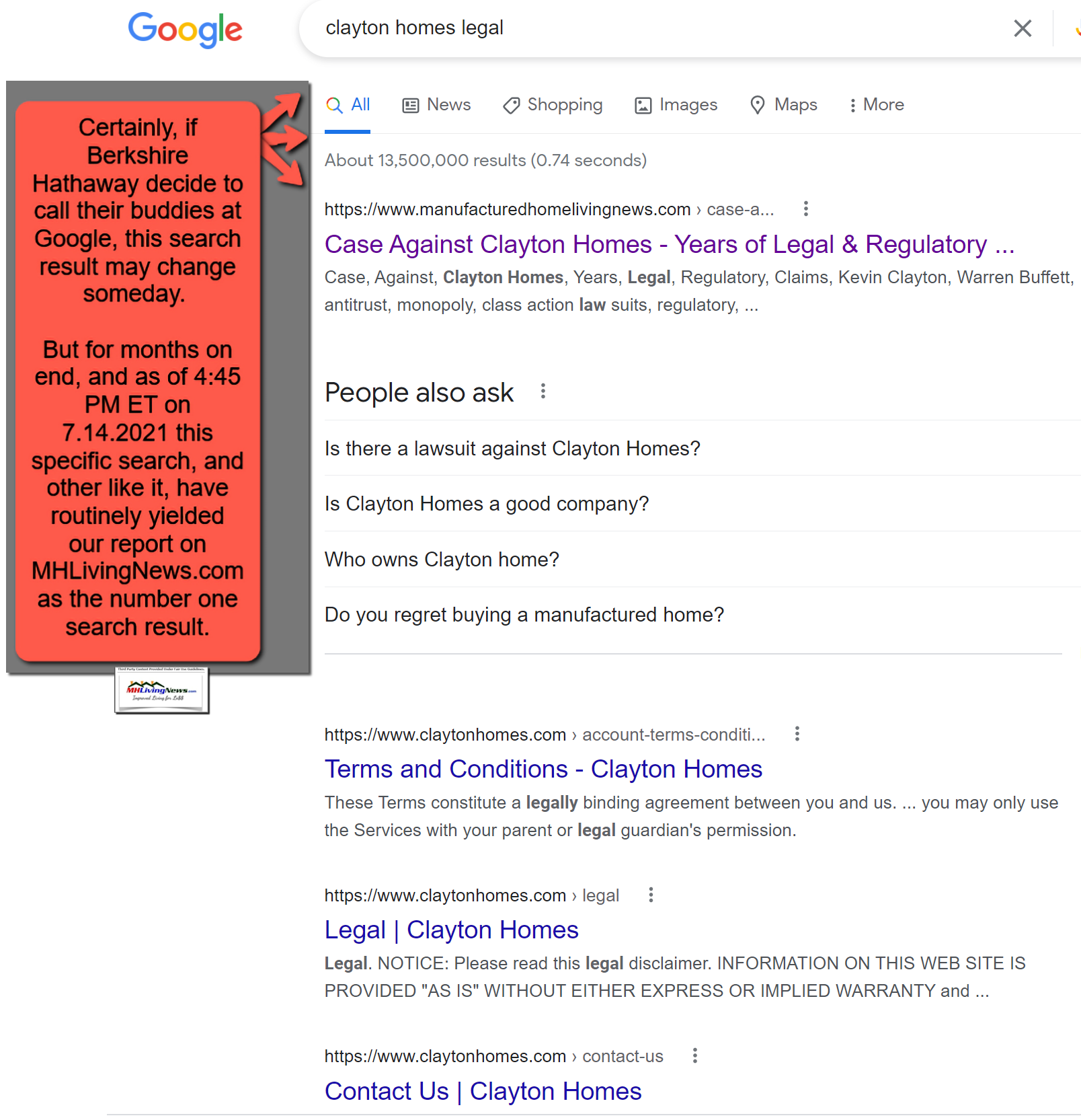 ClaytonHomesLegalLawSuitClassActionGoogleSearchResult7.14.2021ManufacturedHomeLivingNews