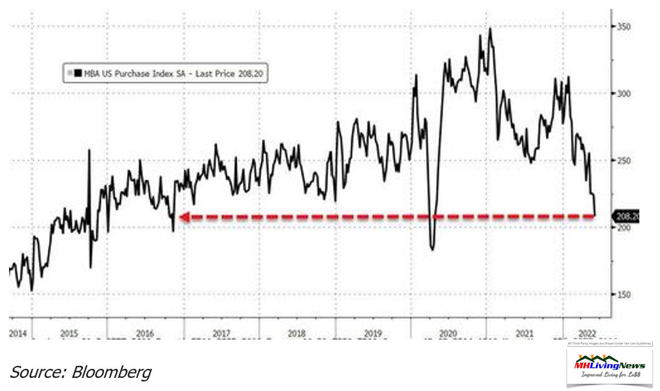 ZeroHedge, citing Bloomberg, said this is “the weakest level for purchase applications since Nov 2016.”