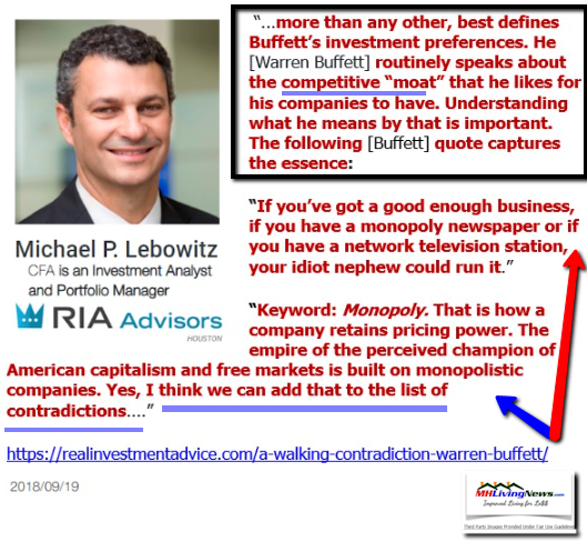 So, while Buffett talks about ethics, there are those who say that it is not Buffett’s words that ought to be the focus of attention, but rather, the attention needs to go to the actual behavior of Buffett and his ‘moat’ building and widening brands’ corporate behavior.