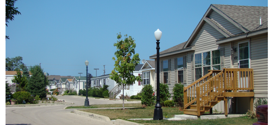 The photo below is from a manufactured home community located in Glenview, IL.  Sunset Village is surrounded by housing that starts around $300,000 for a condo flat, and can go well over $500,000 for conventional ‘site built’ single family housing nearby.