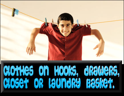 Stop tossing clothes… wherever. Jacket on the chair, clothes on the bedroom floor. This is a recipe for a huge mess, really quick. Remember this mantra: on a hook, in a drawer or closet, or in the laundry basket. Form that new habit, don’t make it easy on yourself.