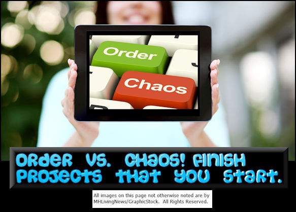 Finish what you start. Half done projects quickly become never done ones. Those undone items create clutter, or even hazards. Try doing less, and allow enough time for each task, so you can finish what you start.