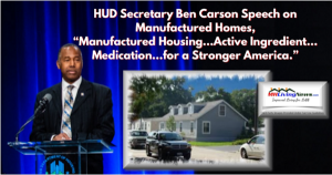 The text that follows has one edit, Manufactured Housing Institute (MHI) Joe Stegmayer’s name was misspelled, and we’ve edited in links to other reports that we’ve published that HUD Secretary Carson’s comments confirmed. Those links have an * at the end of that hotlink. Otherwise, the text is as shown. Manufactured Home Living News (MHLivingNews) … Continue reading HUD Secretary Ben Carson Speech on Manufactured Homes, “Manufactured Housing…Active Ingredient…Medication…for a Stronger America.”