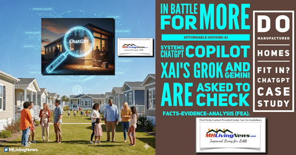 The manufactured housing industry’s role, potential, and performance in the battle for more affordable housing are explored in this exclusive report. A human expert on this topic ‘tests’ ChatGPT’s ‘understanding’ of the affordable housing crisis (see Part I). The questions are asked by MHLivingNews and the bulk of the Q&As (chat, discussion, input-inquiries, etc.) are by the AI systems as shown, most of which in what follows are focused on the popular AI answer/search platform ChatGPT. The inquiries and responses are all documented and confirmed by each AI for accuracy. So casual readers as well as researchers can transparently see the progression of the discussion and the results.