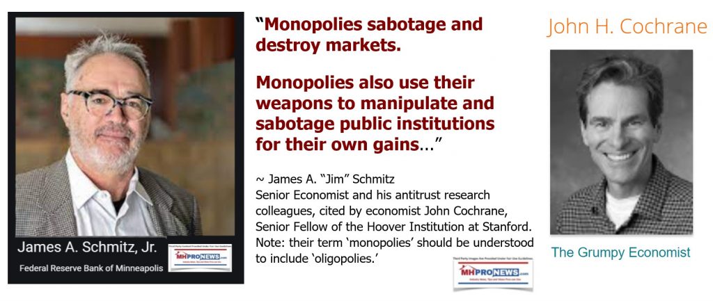 Some articles may need to be read more than once. These are not necessarily light reading. But it can be summed up like this. The system has arguably been rigged. It has been rigged by some major players that dominate the manufactured housing industry. As Minneapolis Federal Reserve researchers have said, this is occurring in other industries too, not just affordable manufactured housing.
