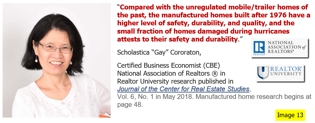 We lay out the facts and insights that others are too lazy, agenda driven, or are otherwise uninformed to do. That’s what makes our sister site and this location the runaway leaders for authentic information about affordable housing in general, the politics behind the problems, and manufactured homes specifically. That’s a wrap on this installment of “News through the lens of manufactured homes and factory-built housing” © where “We Provide, You Decide.” © ## (Affordable housing, manufactured homes, reports, fact-checks, analysis, and commentary. Third-party images or content are provided under fair use guidelines for media.) (See Related Reports, further below. Text/image boxes often are hot-linked to other reports that can be access by clicking on them.)