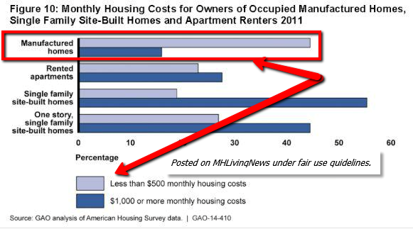 But competitive financing is a hurdle for more manufactured homes. The Urban Institute is among those who have said so. That noted, manufactured homes are still routinely a less costly way to own than buying conventionally built housing. While manufactured home payments may be higher than they normally would if lower rates were available, nevertheless, on total cost and on total payment, millions save money by buying a manufactured home. Needless to say, it would be better still for millions if the loans were less costly.