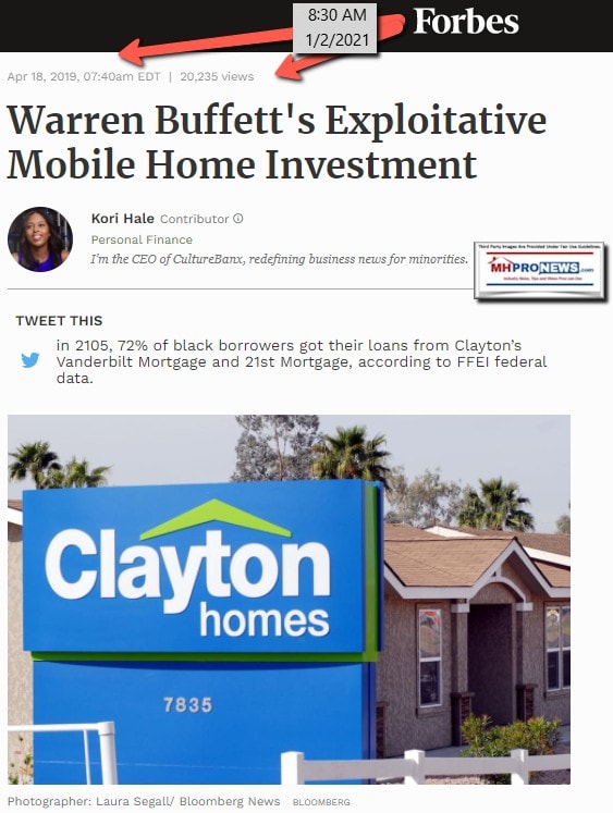 Note to first time visitors. Until you access several of these reports, you will not completely appreciate the evidence, reasoning, source-citing, and ‘follow the money trail’ that occurs here on MHProNews. Readers here routinely cheer or jeer this or that report. Why do they keep coming back? Because they find that the reports stand up to close scrutiny. That is arguably one of the reasons that Clayton, Berkshire Hathaway, MHI, Cavco Industries, Skyline Champion and their respective attorney others do not challenge our evidence and reason based reporting and analysis.