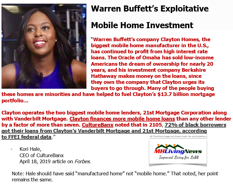 Manufactured Housing Action (MHAction) has teamed up with other progressive organizations that have published a report linked here that ripped private equity and their “predatory” moves into the manufactured home community space. That may be, but the evidence is clear that MHAction has been supported in good measure by billionaire Warren Buffett.