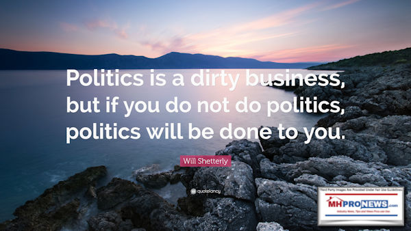 We lay out the facts and insights that others can’t or won’t do. That’s what makes our sister site and this location the runaway leaders for authentic information about affordable housing in general, the politics behind the problems, and manufactured homes specifically. That’s a wrap on this installment of “News through the lens of manufactured homes and factory-built housing” © where “We Provide, You Decide.” © ## (Affordable housing, manufactured homes, reports, fact-checks, analysis, and commentary. Third-party images or content are provided under fair use guidelines for media.) (See Related Reports, further below. Text/image boxes often are hot-linked to other reports that can be access by clicking on them.)
