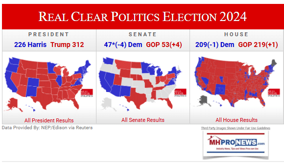 The lack of affordable housing was one of the top issues that guided voting decisions according to various pollsters. The lack of affordable housing near where it is needed in the U.S. costs the economy about $2 trillion dollars a year in economic drag. The 2024 election is largely in the rearview mirror. Donald J. Trump (R) has overcome the challenge of essentially incumbent Kamala Harris (D), winning both the popular vote and the electoral college. Some states and votes are yet to be settled, but several sources, including Real Clear Politics (RCP) Republican will hold the U.S. House, take control of the U.S. Senate, and of course won the presidency. The incoming president determines who will lead various federal agencies and other senior positions. The new Trump cabinet and senior advisors, chief of staff and other presidential team members are being organized. More details on the nuances before or since the election can be found on MHProNews or on our series on the Patch, which included articles on the political, economic, messaging, and media angles plus several affordable housing and manufactured home focused items among them. With those thoughts in mind, the Manufactured Housing Association for Regulatory Reform (MHARR) issued a media release, provided below, urgently asking the incoming Trump transition team to intervene in the controversial application of the Biden-Harris (D) regime’s Department of Energy (DOE) manufactured housing energy rule. Reports on that topic from MHARR are linked here and on MHProNews are linked here.