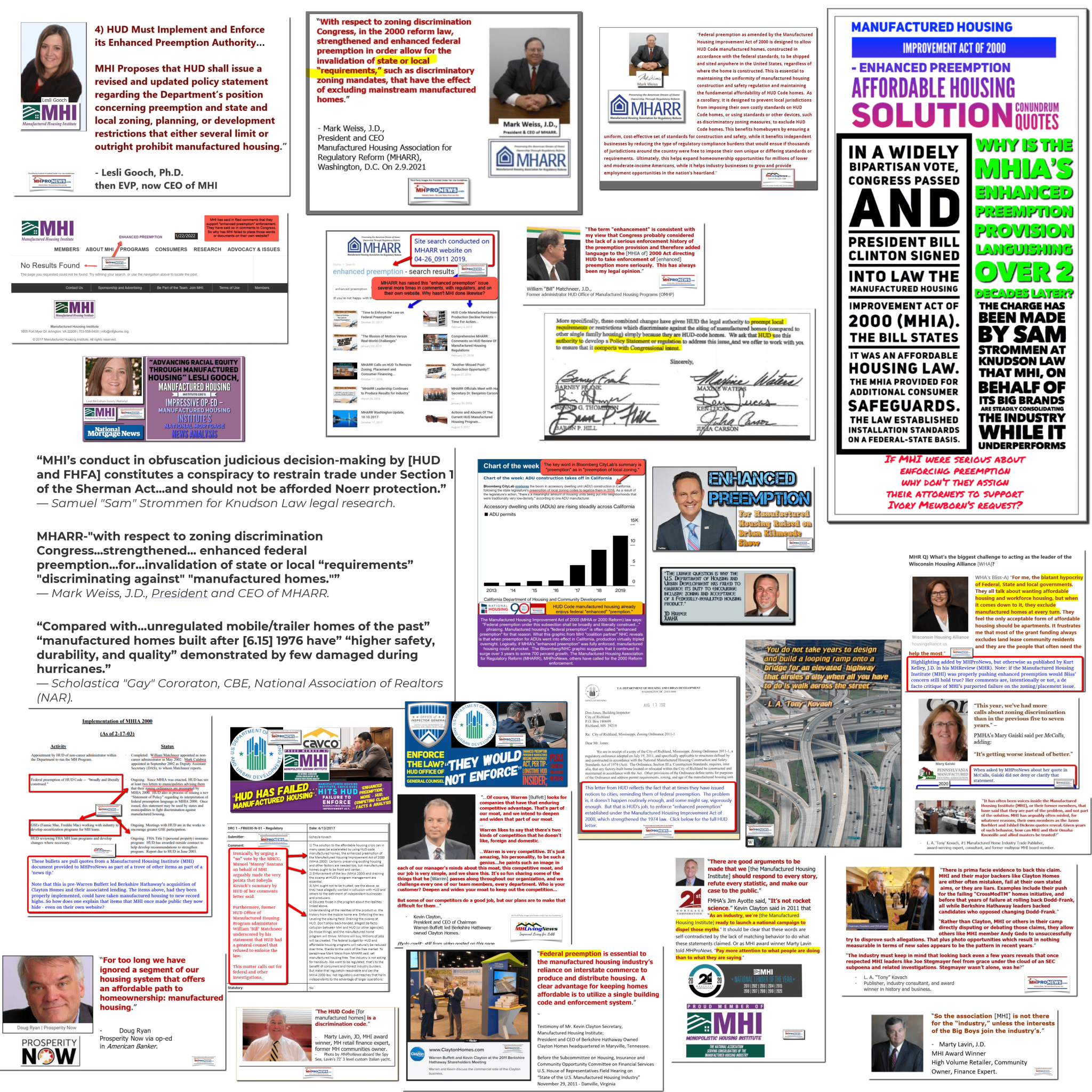 Mewborn cited Gooch’s op-ed in his request for MHI to intervene in the impasse in Ayden, NC regarding “Plant A Home” installation of new manufactured homes. Gooch presumably had the support of the MHI board and leaders. That’s routinely part of the genesis of op-ed’s like hers published by NationalMortgageNews. Oddly, Gooch never mentioned in that op-ed the phrase “enhanced preemption” with respect to the MHIA.