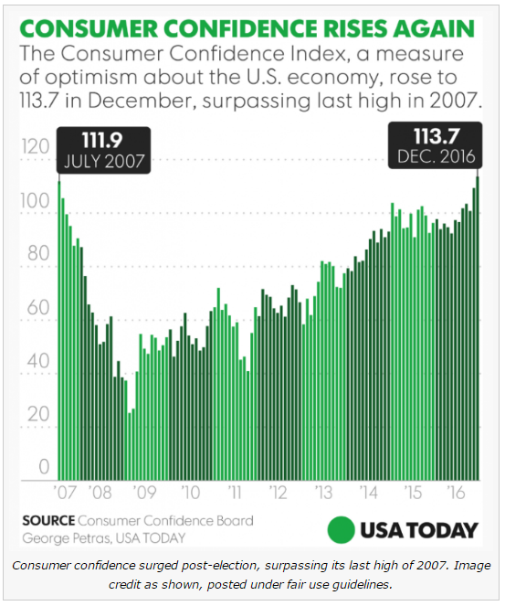 Consumer confidence has soared to the highest level it has been since 2007. The desire for truly positive change is likely to keep the heat on politicians to do what’s best for the vast majority of Americans.