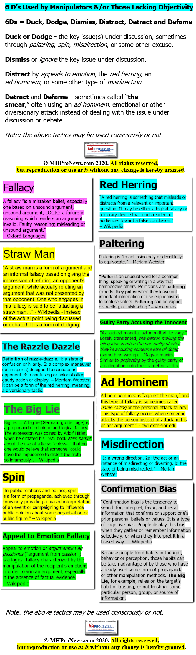 Rather than engage on substance, facts, or logic – some people engage in name calling and deflection. These are known as logical fallacies or debating tools used by those who do not have a good reply that is based upon the facts and evidence.