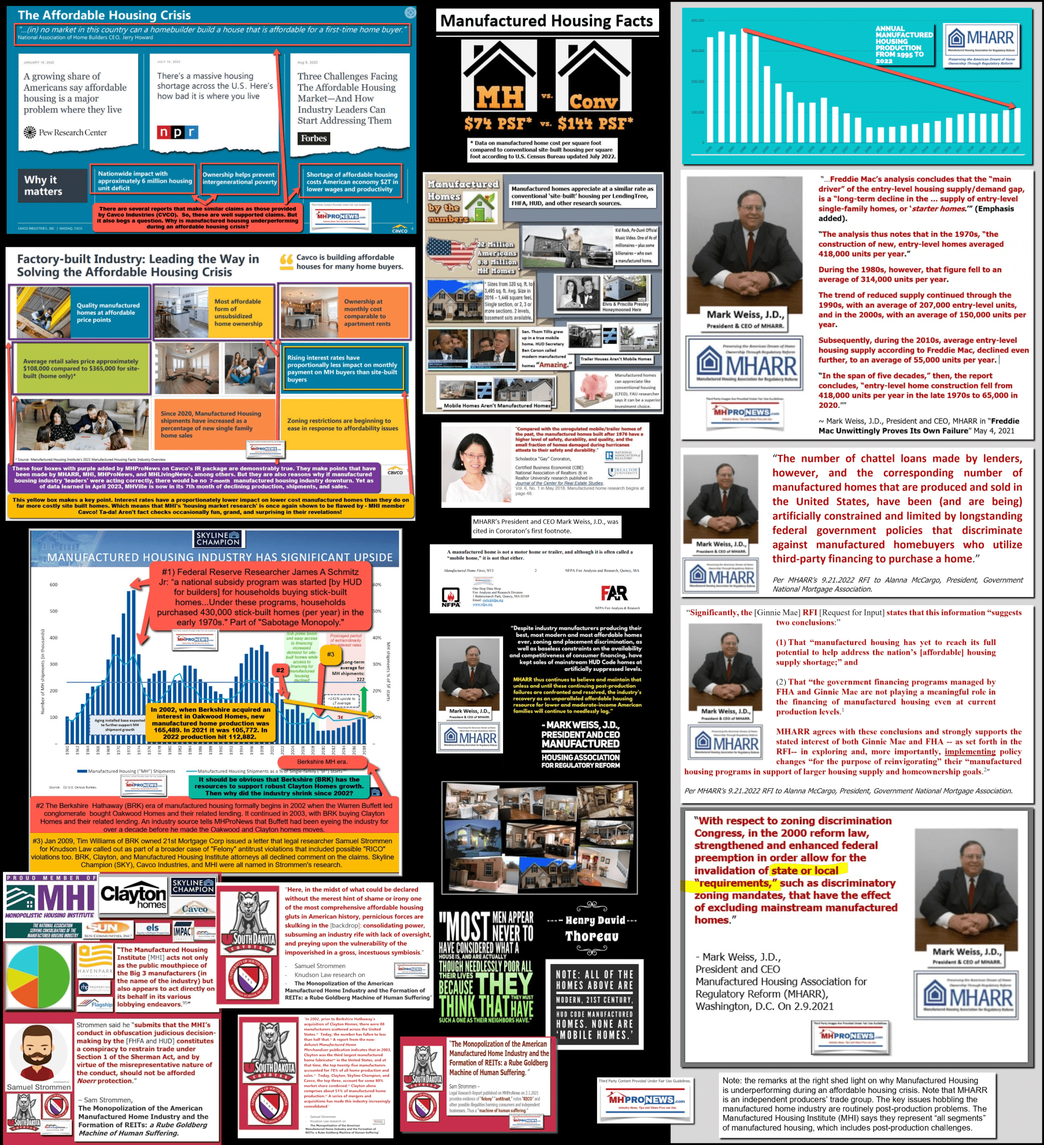 WINTER HAVEN, FLORIDA, UNITED STATES, June 12, 2023 /EINPresswire.com/ — ManufacturedHomeLivingNews.com (MHLivingNews.com) and ManufacturedHomeProNews.com (MHProNews.com) have published a series of new reports exploring research by four attorneys, an investment analyst, and a senior economic expert which report the underperformance of the manufactured housing industry in general and/or identify the Manufactured Housing Institute’s (MHI) controversial role in particular. Those legal professionals, analyst, and economist are broadly outsiders looking into why manufactured homes, which they generally praise, is an underperforming industry during an affordable housing crisis.