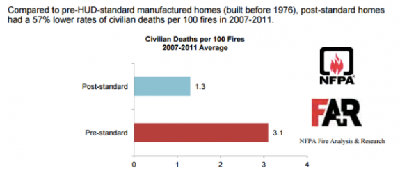 November 2014 – National Fire Protection Association (NFPA) – manufactured home safety compared to mobile homes and conventional housing.