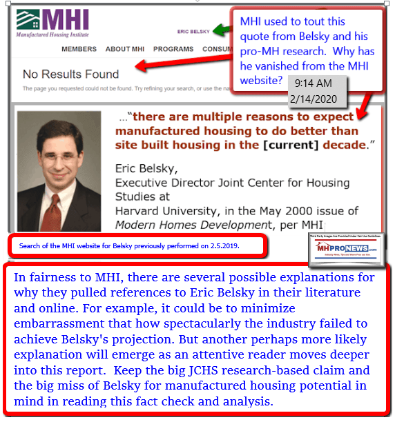 May 2000 then Harvard’s JCHS Executive Director Eric Belsky was cited by Modern Homes Development – then Executive Director of the Joint Center for Housing Studies (JCHS) at Harvard University “there are multiple reasons to expect manufactured housing to do better than site built housing in the decade.” Meaning, by 2010, Belsky – who’s research made him quite aware of the manufactured housing credit and repo crunch post-1998, nevertheless still projected that HUD Code manufactured homes would overtake conventional housing. Why? Because the quality for manufactured homes was there, plus there was – and remains – a growing affordable housing crisis. See related report and analysis linked here and below.