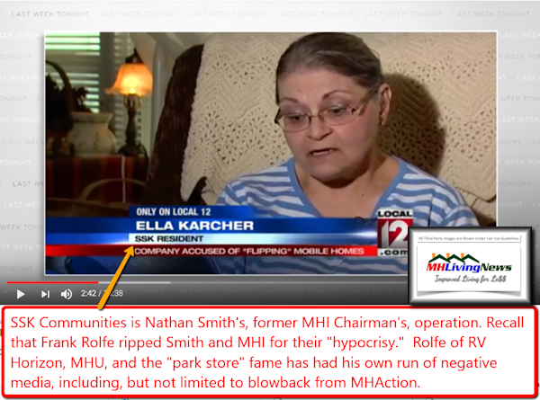 Oliver did not specifically mention SSK/Flagship. But his video included this still, shown below which was part of the original report published above. MHLivingNews recognized that local news video as being part of a report featuring SSK, now Flagship Communities.