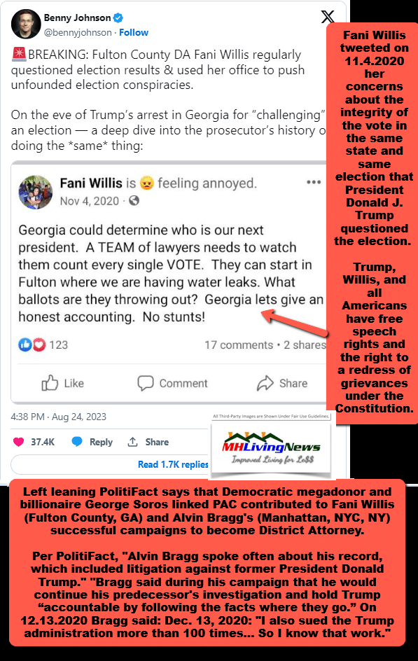 As an example of the concern that these indictments do not appear to be an application of equal justice under law is a tweet from Georgia by Fani Willis, the woman who is currently the district attorney prosecuting Trump. Willis herself on 11.4.2020 clearly questioned the vote count in Fulton County, GA. Willis publicly said she wanted attorneys involved. Fast-forward to DA Willis getting an indictment of Trump and his attorneys for questioning that same vote count. Isn’t that a blatant double standard? Is she going to indict herself? Not likely.