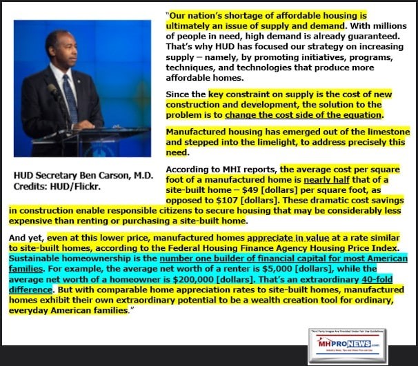 With that introduction, the bulk of his article (the complete text sans the featured image, which should never be used with a manufactured home report; or their cross-links to ‘related’ topics) will be provided under fair use guidelines for such fact-checks and basic fisking. In Somers’ text below where the reader sees yellow highlighting (added by MHLivingNews) those areas are specifically examined to correct errors or refine a claim.
