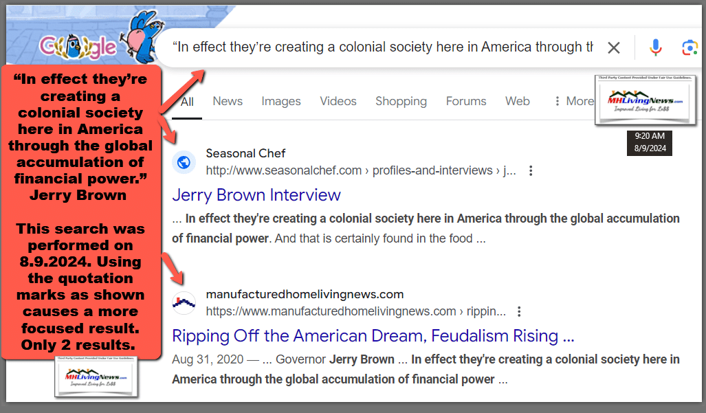 But as MHLivingNews and our MHProNews sister-site has reminded readers for some years, even before Carlin and CitiGroup made their statements, former Governor Jerry Brown (CA-D) said the following.
