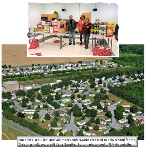 “It’s become our tradition to participate in the food drives to benefit the communities we serve, and we are very thankful to our members who donate so generously to those less fortunate during the holiday season,” said Jen Allen, First State Manufactured Housing Association executive director.