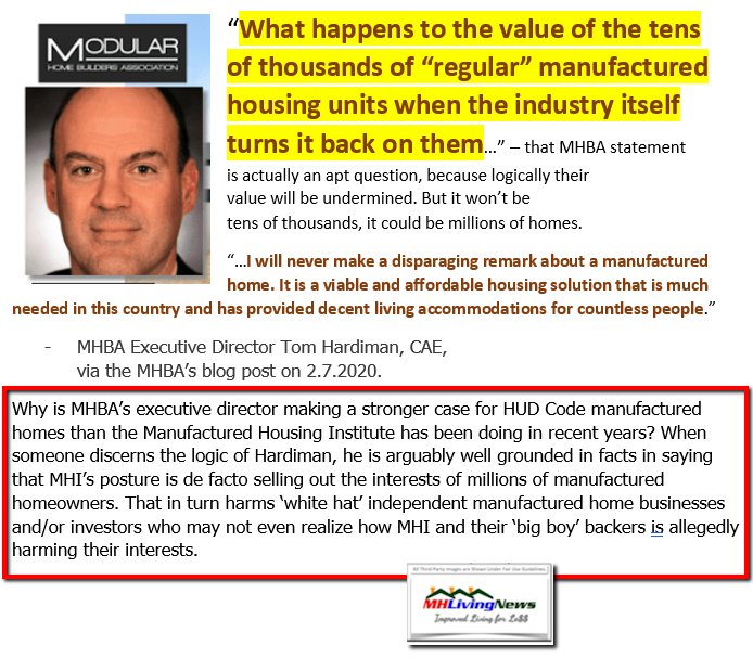 Perhaps in their upcoming research into these issues, Schmitz and Fettig should consider the notion that not only NAHB, but how other nonprofit trade groups such as the Manufactured Housing Institute (MHI – as odd as that may sound at first) are involved in this ‘colluding’ or sabotaging the manufactured home industry. Because yet another third-party researcher noted herein, beyond the linked reports, there is evidence from MHI member companies that will be cited herein made just such an evidence-based allegation.