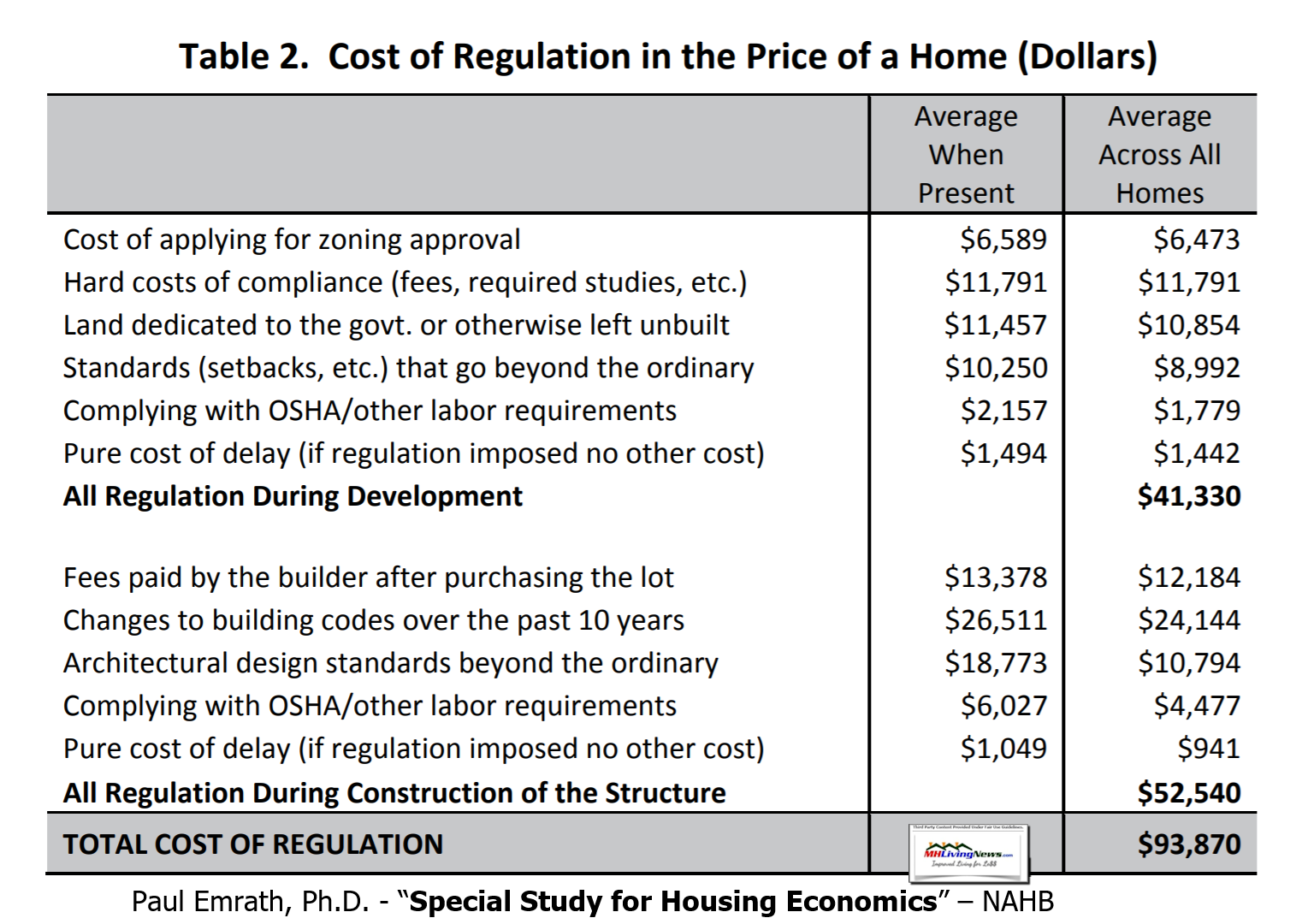- More than 25% of the cost of a new home is the direct result of Federal, State, and local regulations, with the price tag even reaching up to 42% for some new multifamily construction.