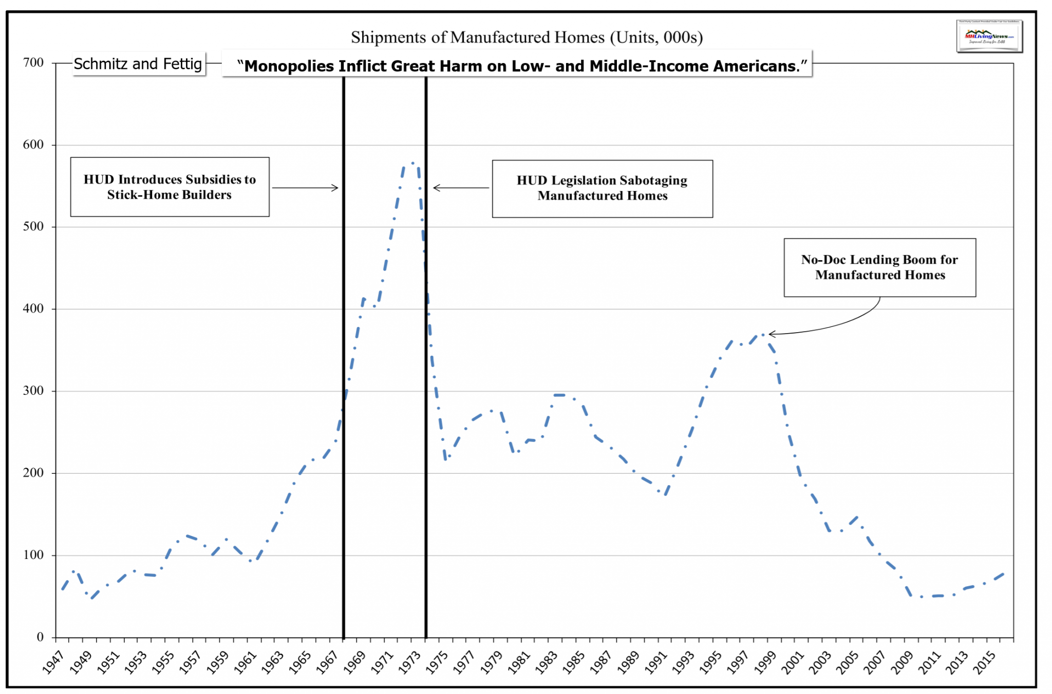 Schmitz and Fettig get specific in looking at how affordable manufactured homes have been “sabotaged” by what they claim is a combination of HUD, builders, and industry trade organization interference.
